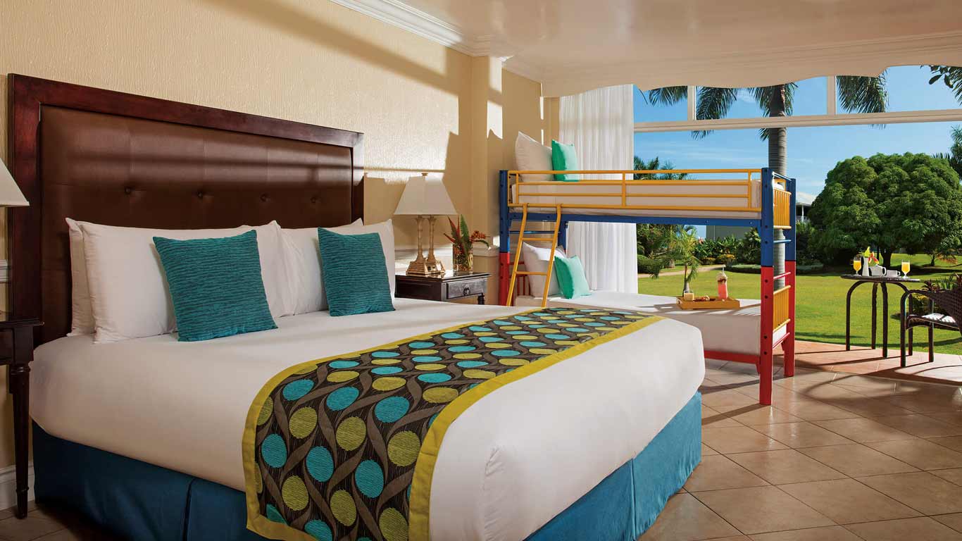 In the Deluxe Resort View room at Sunset Montego Bay you can rest peacefully with delightful tropical views of the resort. Includes a king bed or two double beds, and a private furnished balcony. Convenient connecting rooms can be requested.